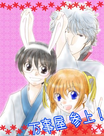 2011.02.05「銀魂」 万事屋トリオ「年賀状に貼り付け用にプリクラで撮った」設定で。せめて1月中には仕上げたかったんですが――…il||li_| ̄|○il||li